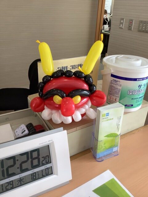 バルーンアートで鬼を作って受付に飾りましたが「歯が出っ歯で顔が怖い。去年みたいなかわいいのがよかった。」と言われてしまいました。