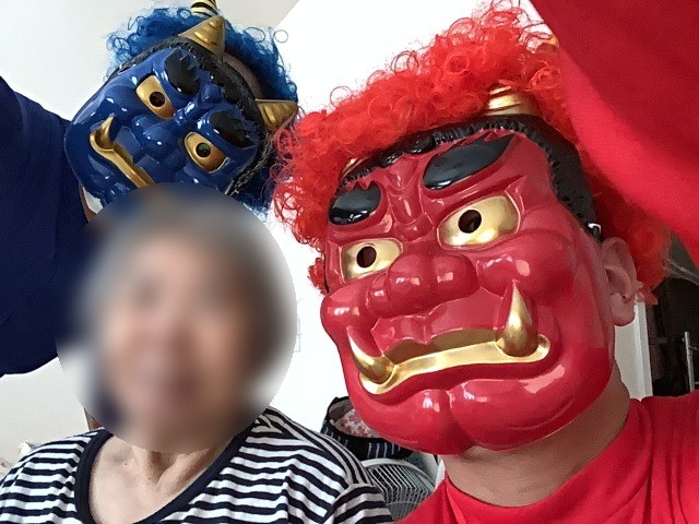 今年は鬼は顔塗ではなくお面で仮装しましたが、視界が悪く鬼同士がぶつかる事しかりでした。