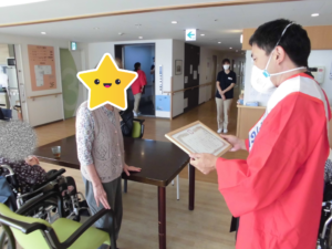 施設長より賞状のプレゼントがありました。