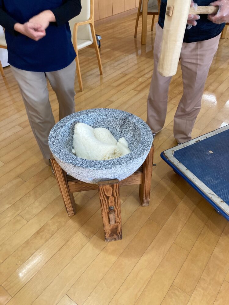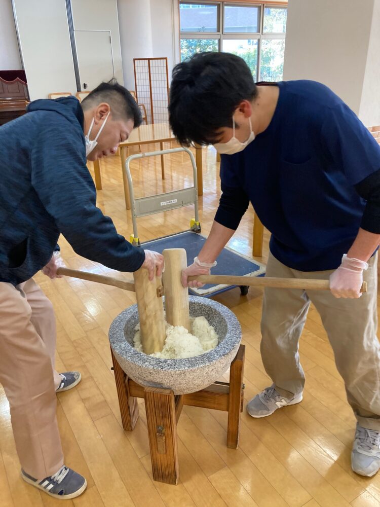 入居者様にも手伝って頂き、朝から夕方まで餅つきの一日でした。