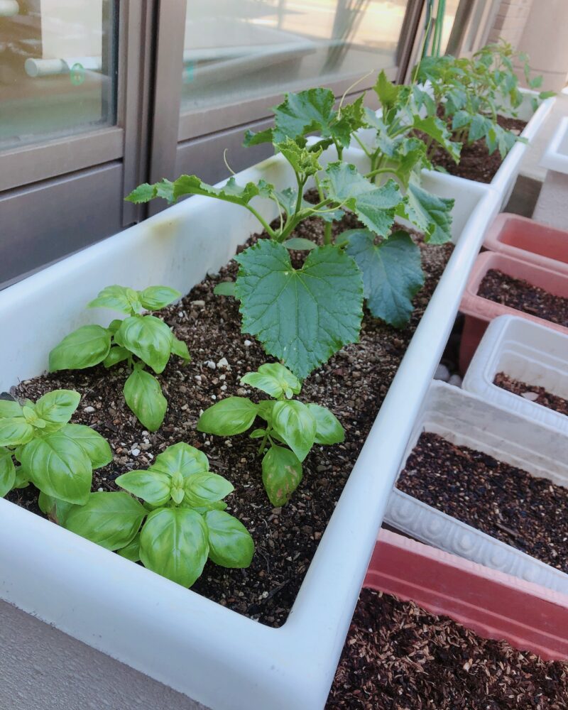 プランターで、バジル、キュウリ🥒、ミニトマト🍅、ひまわり🌻を!!
