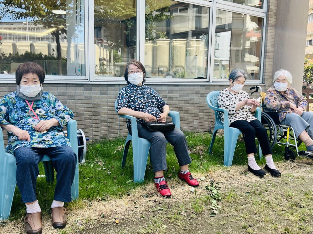 散歩コースになっている中庭で休憩
