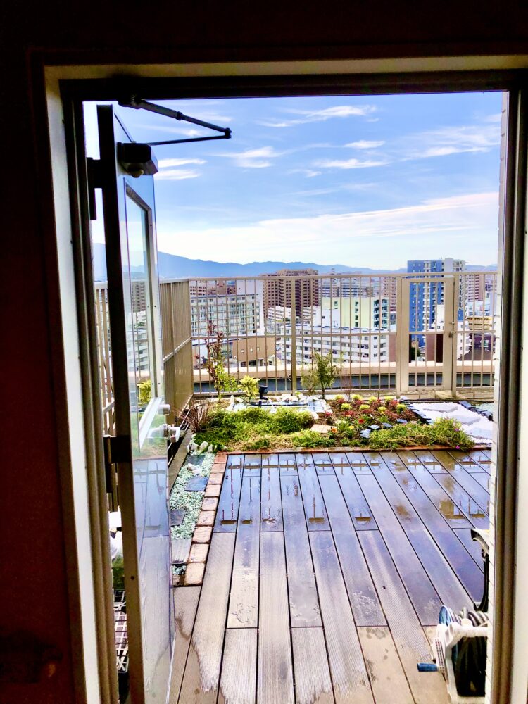 13階に花を植えなおしましたので、