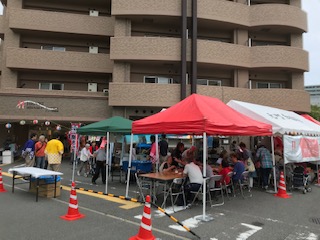 元町自治会様、地域の諸団体様よりお借りしたテントにて、