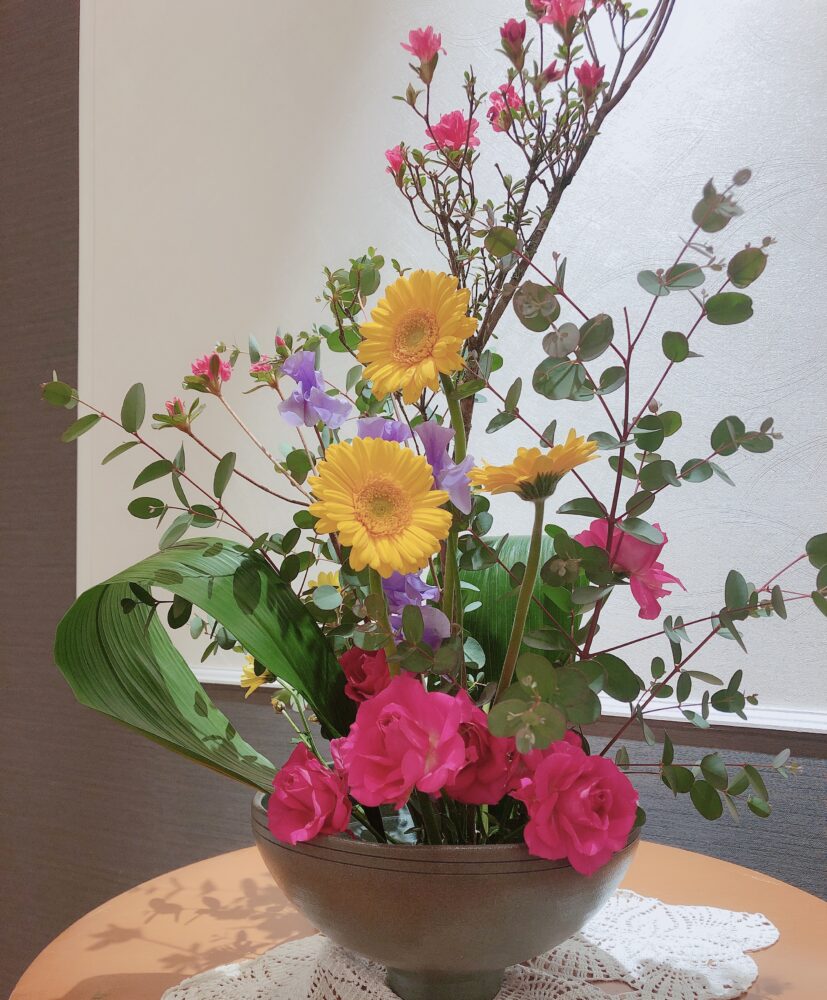 レストラン前の花も、職員のTさんに新しく活けていただきました🌹