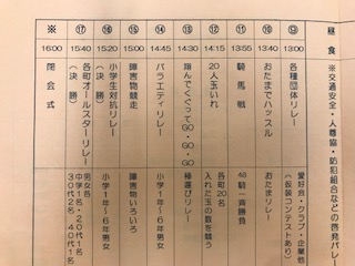 騎馬戦・玉入れ・棒運びリレー・障害物リレー どれも練習しないと・・・。