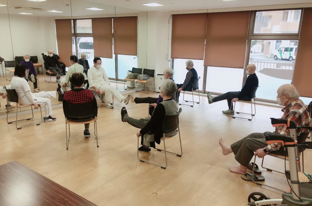 座って行うもの、立って行うもの、ご自身の状況に合わせて取り組まれております。