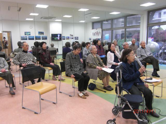 1分間の黙とうをした後、「故郷」を歌おうとの新聞の呼びかけに応えて、フィットネスに集まられました。