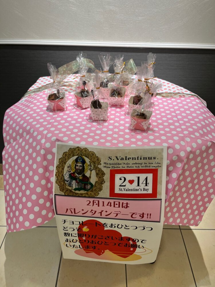 手作りチョコレートをお配りいたしました。