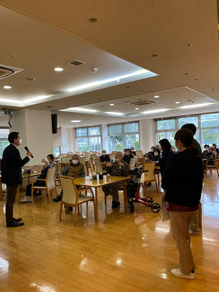 入居者様 19名の参加と職員も参加し、1時間ほどかけ、