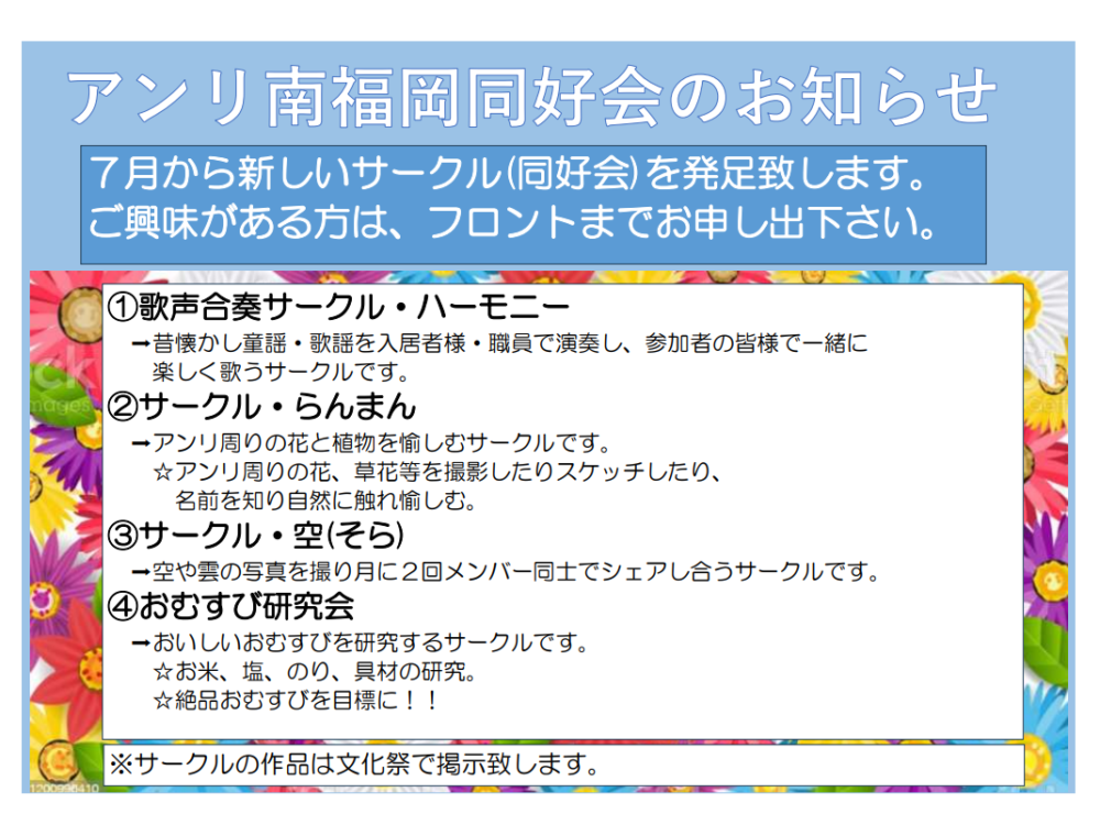 新なサークル、そして復活したサークルが、この7月に始動します!!