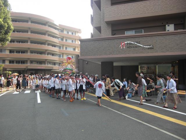 子供神輿が「薔薇の樹苑」と「アンリ南福岡」に