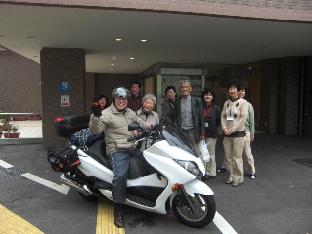 バイクで東京の桜を見に ・ロビーでご家族の方をパチリ