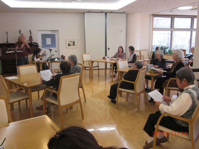 懐かしい歌、唱歌を皆で歌います。日本の歌には、いい歌がありますね。