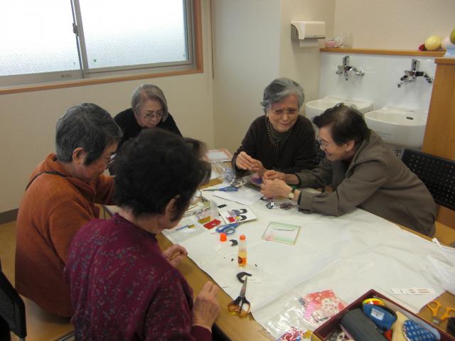 ちぎり絵同好会の皆様、今回は和紙を折って貼り付ける